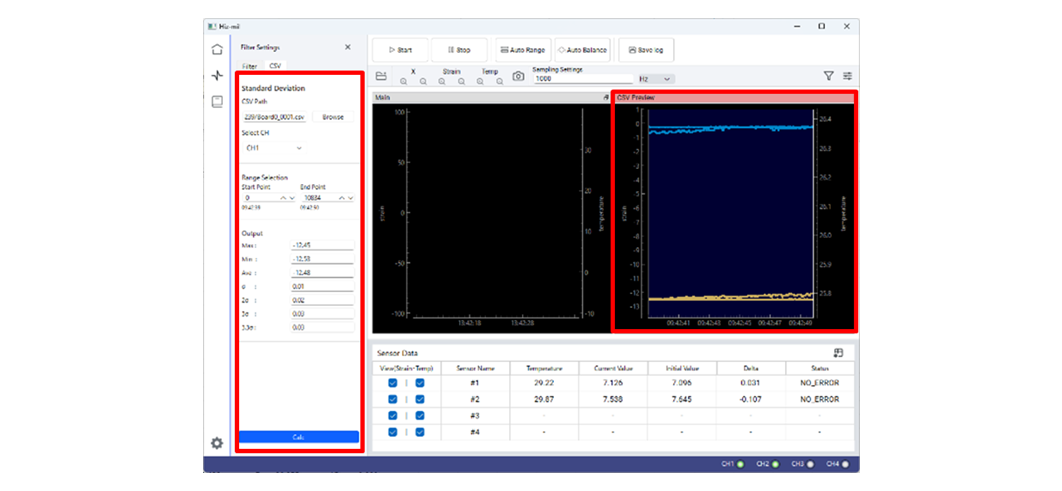 標準偏差機能は、記録したCSVデータに対して解析を行う機能です。