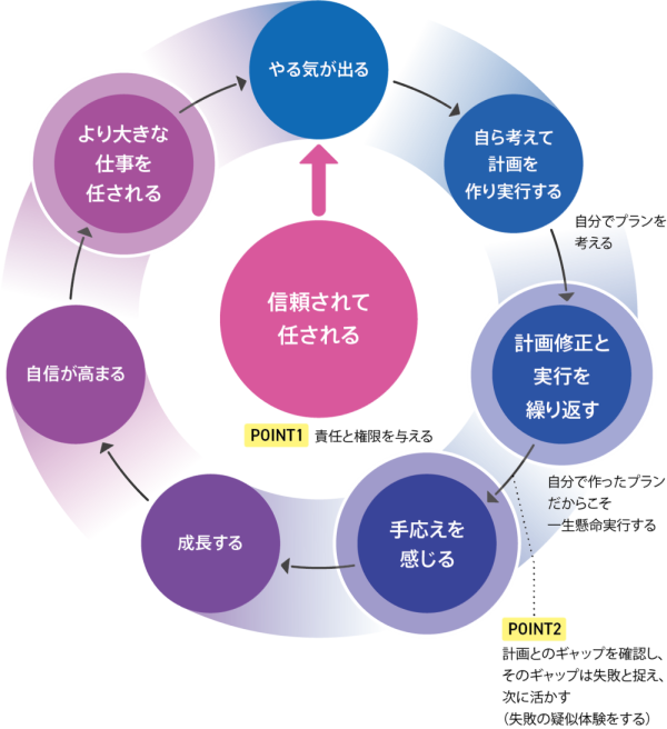 管理職は、部下に信頼して仕事を任せること、部下のチャレンジを積極的に支援すること、やる気を最大限に引き出すマネジメントを行うことが求められています。